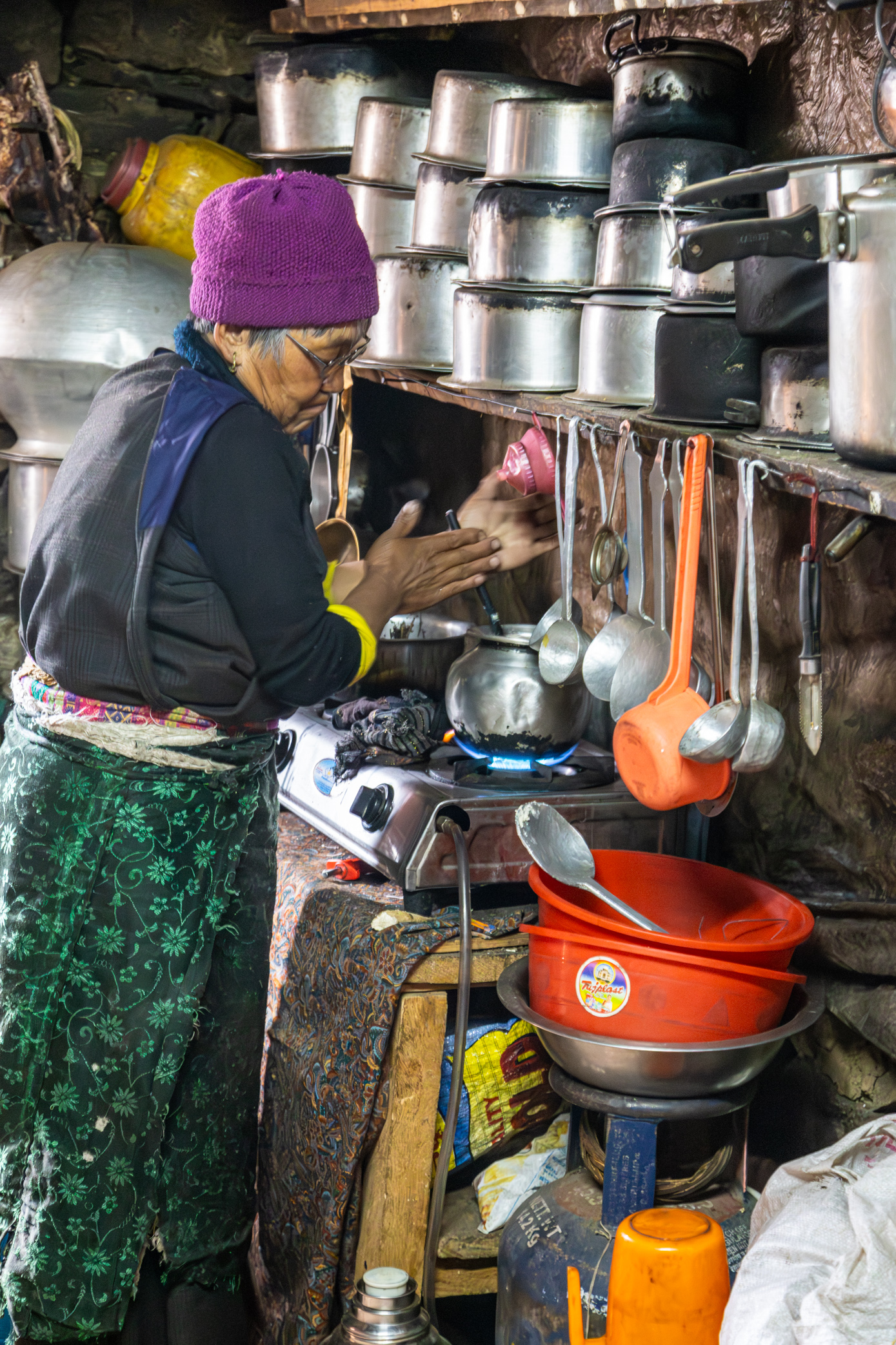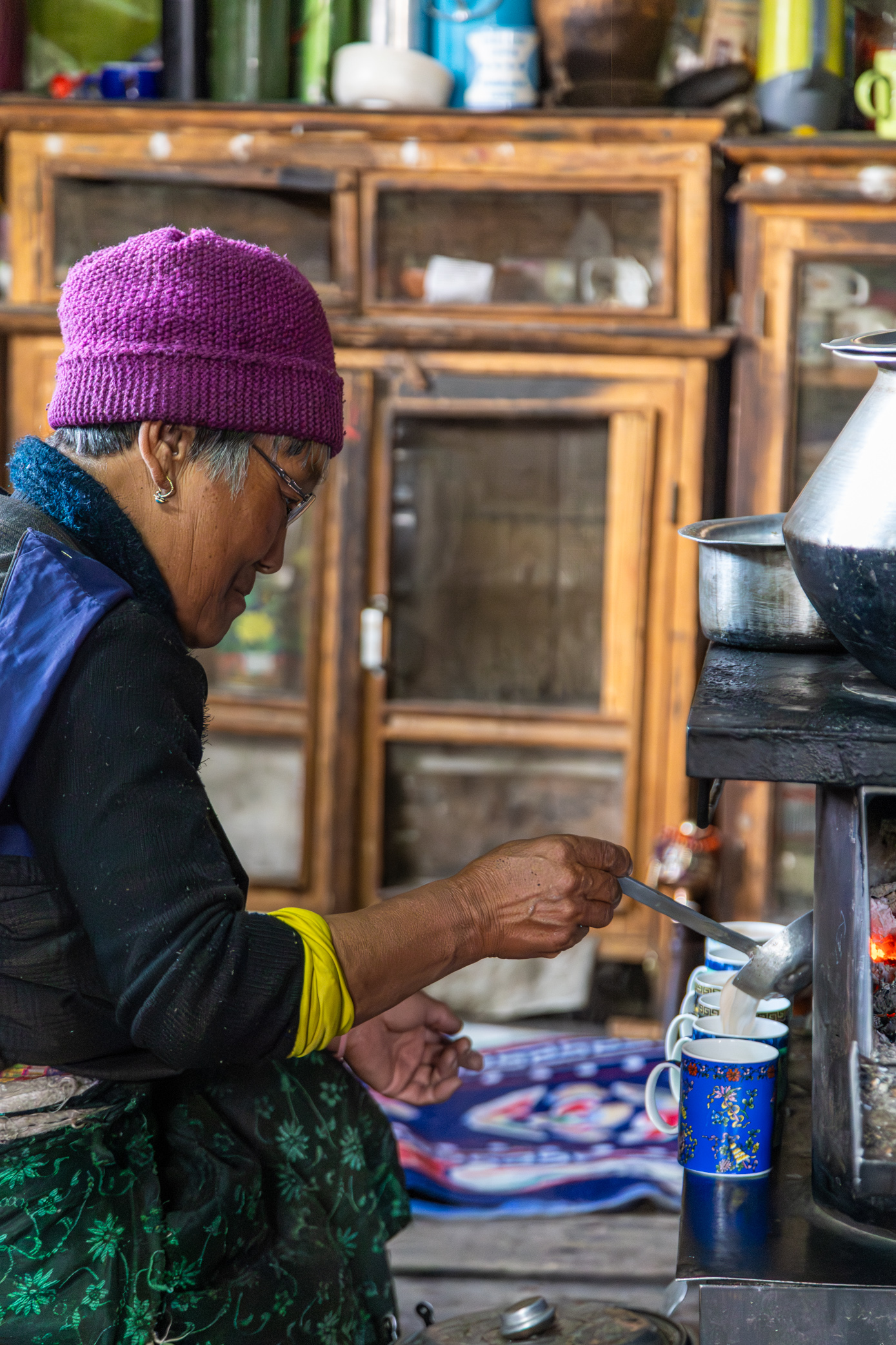 The teacher’s mother immediately began preparing butter tea for us.